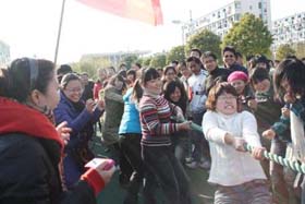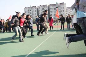 寒風(fēng)簌簌,陽光絢爛。在2008年12月6日這個(gè)寒冷而富有激情的日子里,我司第一屆冬季運(yùn)動(dòng)會火熱開展。為了充分調(diào)動(dòng)大家的激情,此次比賽項(xiàng)目的策劃可謂煞費(fèi)苦心。除了籃球賽、4*100接力賽、100米短跑、乒乓球比賽、等傳統(tǒng)比賽項(xiàng)目外,新增了很多趣味比賽項(xiàng)目如:趕小豬、兩人三足跑、夾球跑……大家玩得不亦樂乎!為了充分調(diào)動(dòng)大家積極性,我們?yōu)檫\(yùn)動(dòng)健兒們準(zhǔn)備了豐富的獎(jiǎng)品,有棉被、電蒸鍋、電熱水捂、手套、圍巾、領(lǐng)帶、保溫杯、指套裝、收音機(jī)、筆筒等等。我們還特設(shè)抽獎(jiǎng)環(huán)節(jié),每項(xiàng)比賽的前三名都會獲得一張“金卡”,拿著金卡可以抽獎(jiǎng),中獎(jiǎng)率為100%,未得金卡的選手們也將得到一份精美禮品。