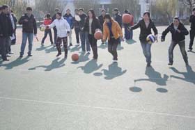 趕小豬游戲中,我們的女同胞們拍起籃球來個(gè)個(gè)英姿颯爽