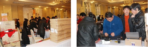 下午兩時許,企業(yè)家們陸續(xù)到來,簽到、簽名、進入會場。會前,企業(yè)家們對禮品兌換區(qū)產(chǎn)生了極強的興趣,大家顧不上入座就紛紛涌向咨詢臺詢問促銷方案,續(xù)費、領(lǐng)禮品、兌積分,忙個不亦樂乎。