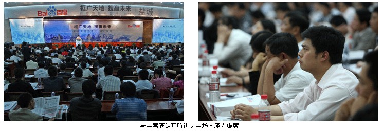 6月10日,陰雨綿綿。“營銷中國行”活動在鹽隆重拉開帷幕。此次活動旨在探討如何提升企業(yè)網(wǎng)絡(luò)營銷能力來促進(jìn)地方經(jīng)濟繁榮,受到政府、學(xué)術(shù)界、商界的高度重視。市經(jīng)信委主任羊維達(dá)、臺灣因特網(wǎng)營銷研究協(xié)會秘書長陳定震、百度公司服務(wù)管理部總監(jiān)任建斌、百度公司渠道部銷售總監(jiān)欒天、百度公司渠道部渠道經(jīng)理曹宇等35位嘉賓以及500多家鹽城市重量級企業(yè)家代表出席了活動,共同見證這一盛況!